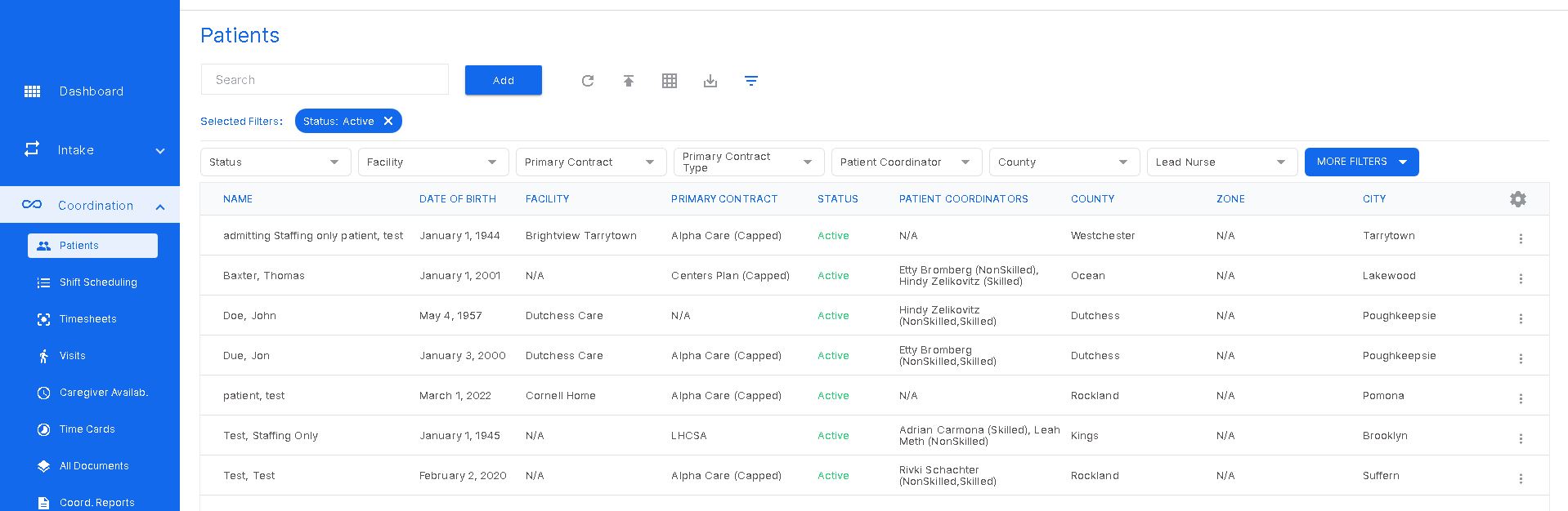 Click "Patients" under Coordination tab to view patient list.
