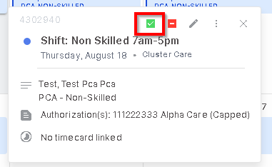 To confirm a visit, click on the visit itself and click on the green check mark icon.