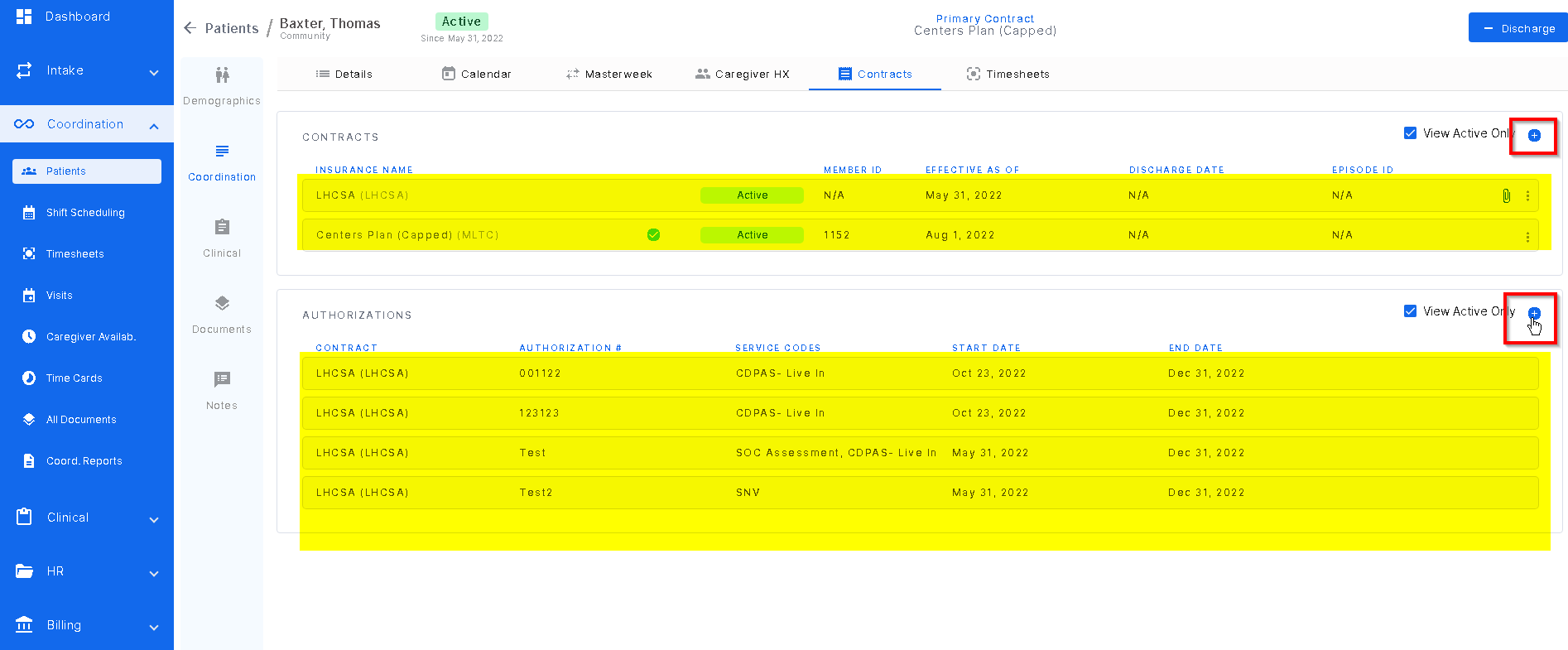 Users can also add multiple contracts and authorizations here simply by clicking the "plus" icon to the right of the contracts/authorizations.